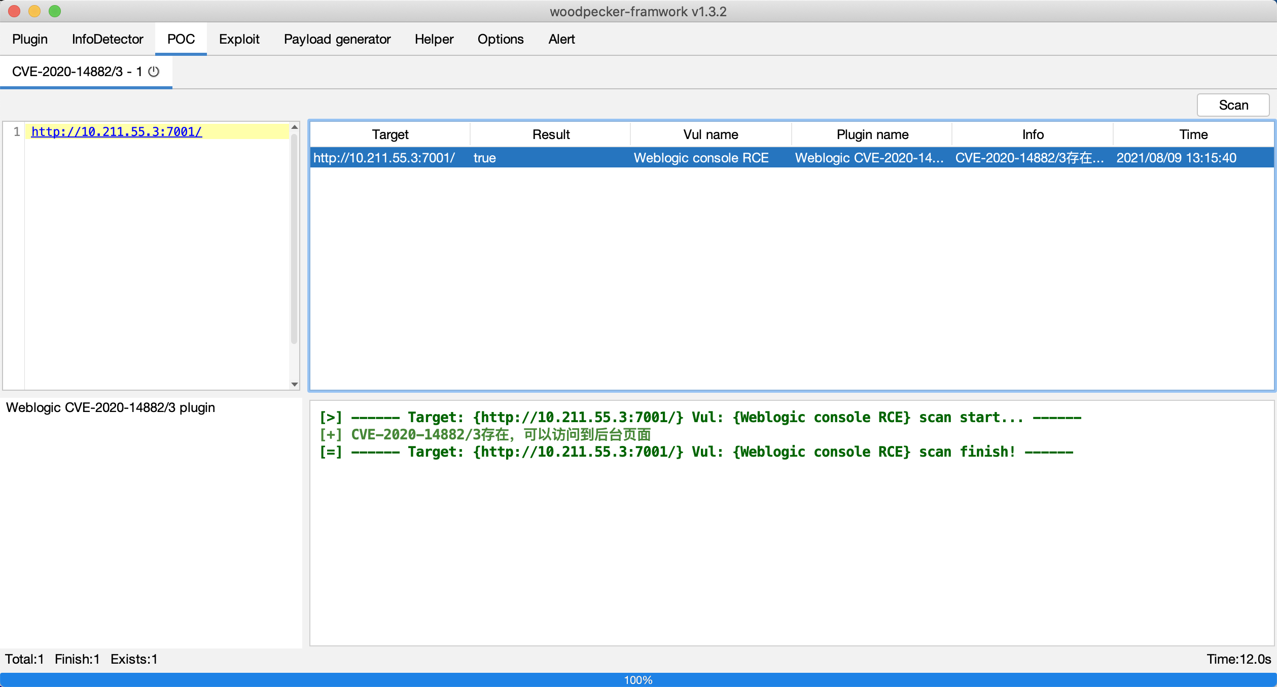 下面围绕weblogic和shiro这两个高频漏洞应用来介绍每个模块。