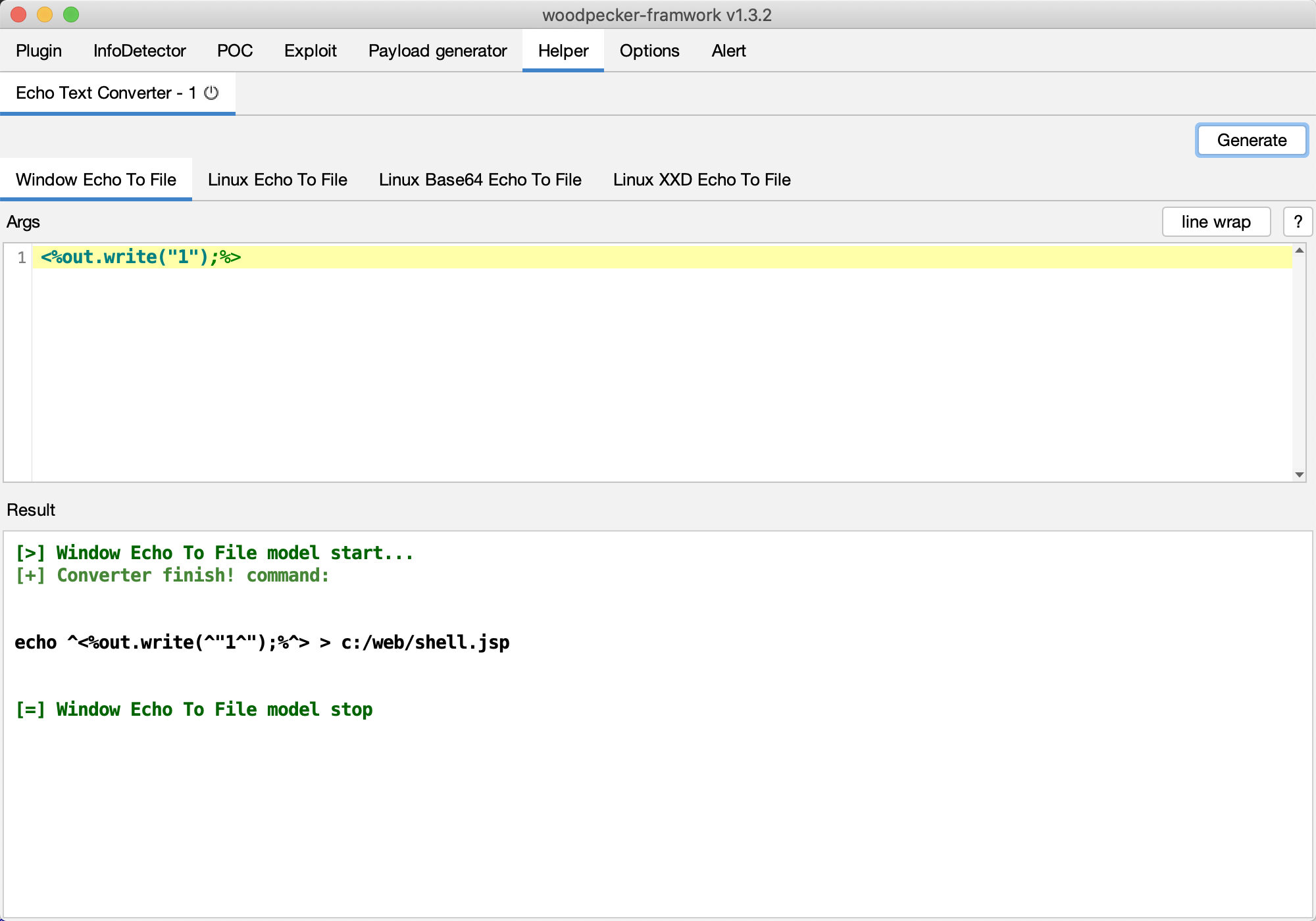 同时如果向通过命令执行漏洞写一个shell的话,往往需要转义下,这个过程也是比较繁琐的。可以使用EchoToFileConverter插件来解决。